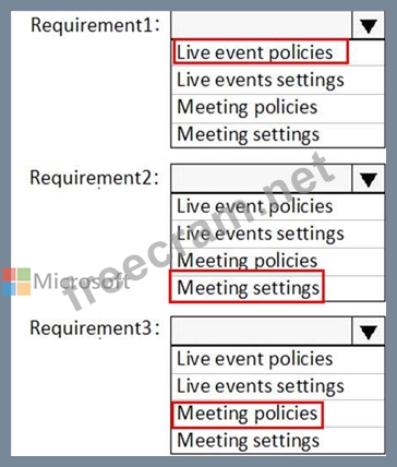 You need to configure Microsoft Teams to meet the requirements shown in the following table.
