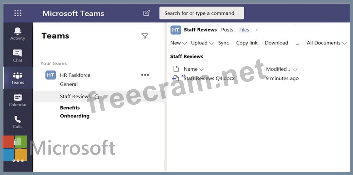 The files in the Staff Reviews channel are shown in the Files exhibit.