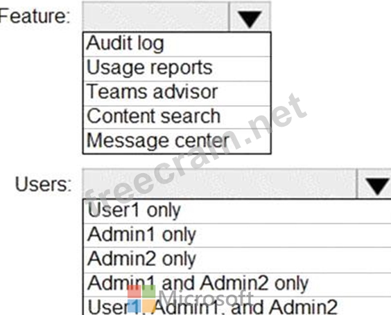 Which users can monitor Project1, and which feature should the users use? To answer, select the appropriate options in the answer area.