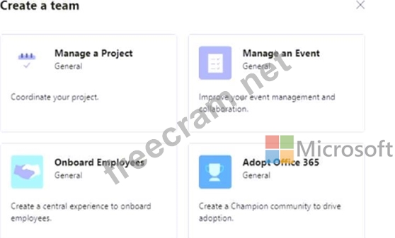 When a user creates a new team, the user sees the templates shown in the following exhibit.