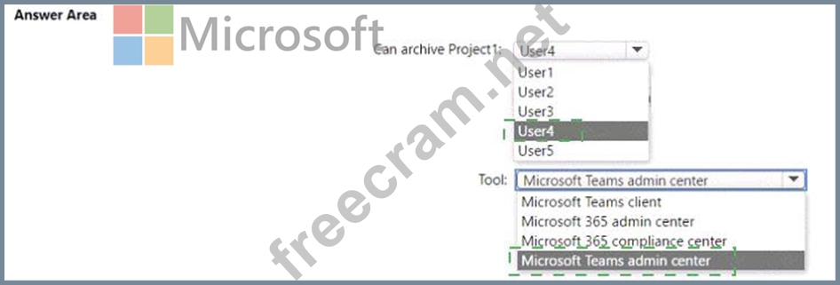 Which user can archive Project 1, and which tool should be used to perform the task? To answer, select the appropriate options in the answer area.