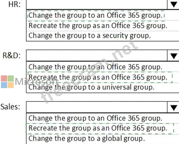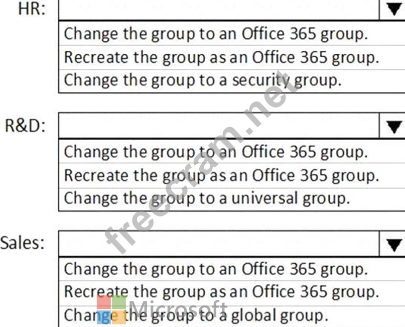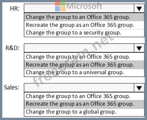 What should you do to each group? To answer, select the appropriate options in the answer area.