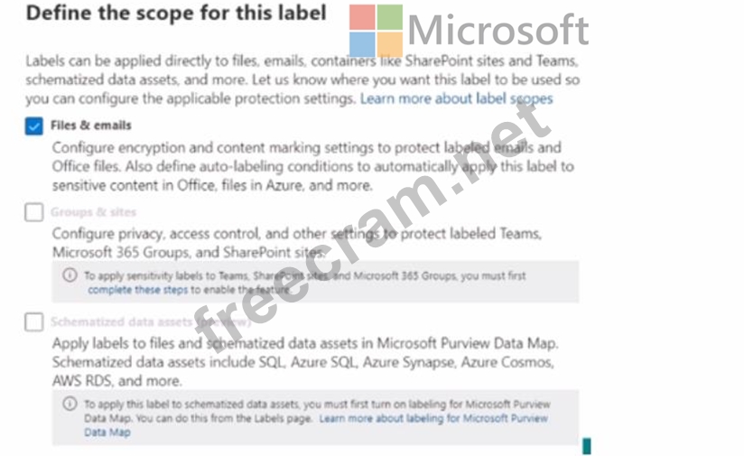 When you attempt to create a new sensitivity label for Teams, you discover that the Groups & sites option is unavailable as shown in the following exhibit.