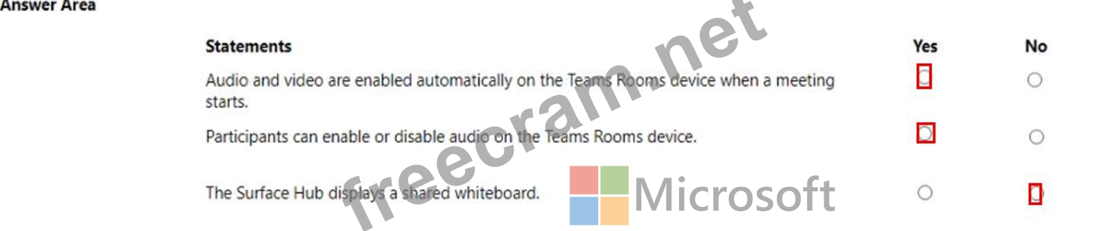 For each of the following statements, select Yes if True. Otherwise select No. NOTE: Each correct selection is worth one point.