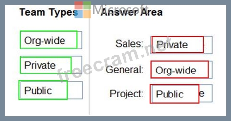 What should you configure each team? To answer, drag the appropriate team types to the correct teams. Each team type may be used once, more than once, or not at all. You may need to drag the split bar between panes or scroll to view content.