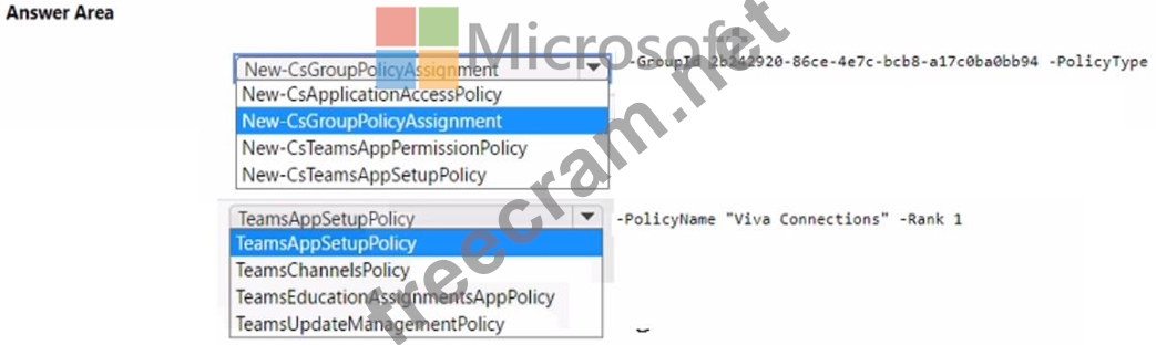 How should you complete the PowerShell cmdlets? To answer, select the appropriate options in the answer area.
