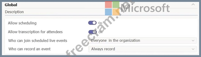 The company's global live event policy is configured as shown in the following exhibit.