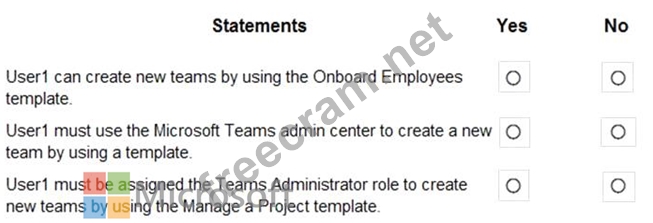 You have a Microsoft 365 subscription that uses Microsoft Teams and contains a user named User1.