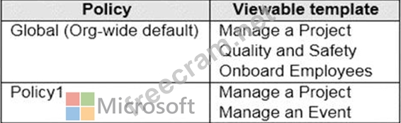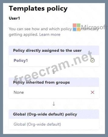 The Templates policy settings for User1 are configured as shown in the following exhibit.