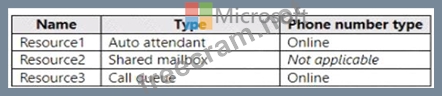 You have a Microsoft 365 subscription that uses Microsoft Teams. You need to create the resource accounts shown in the following table.