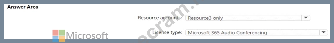 Which resource accounts require licenses, and which type of license is required? To answer, select the appropriate options in the answer area. NOTE: Each correct selection is worth one point.