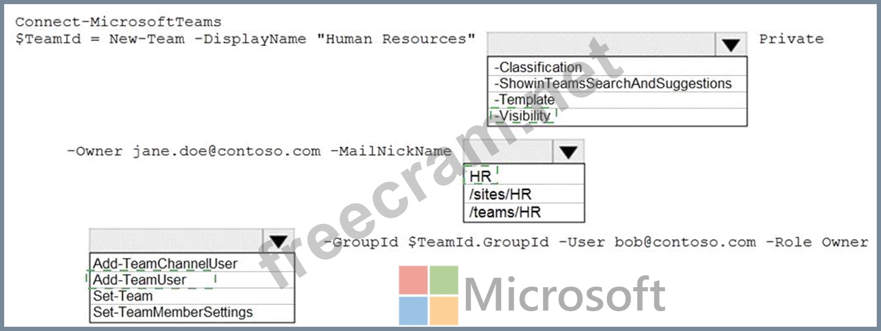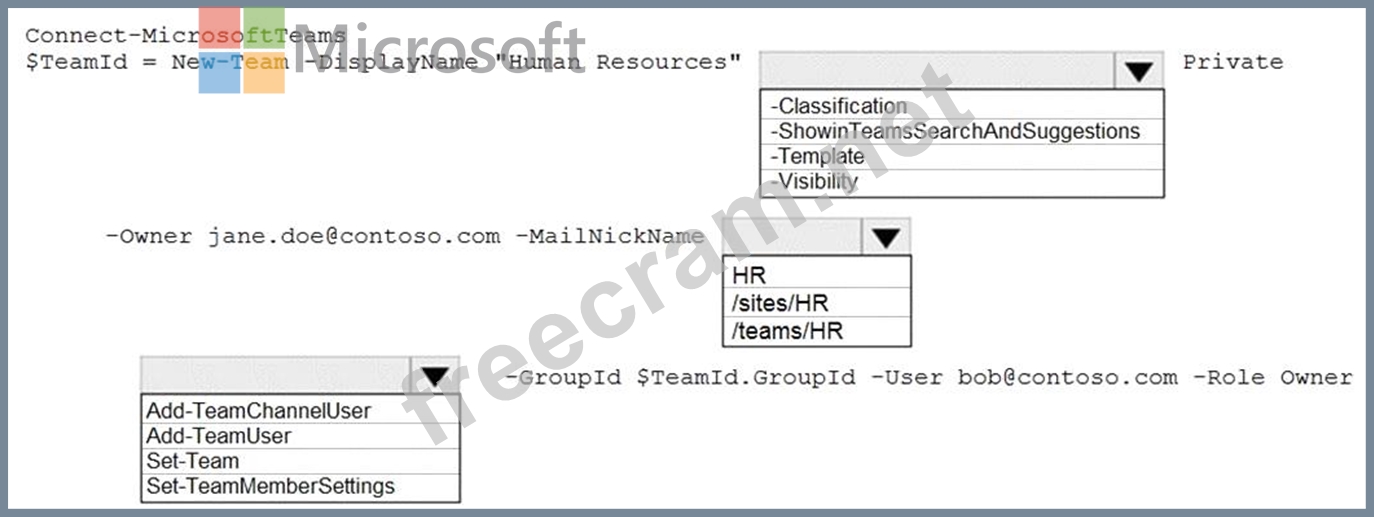 You need to create a new Microsoft Teams team named Human Resources that meets the following requirements: