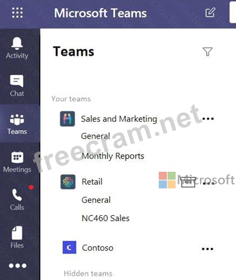 You company has a Microsoft 365 subscription that contains the teams shown in the following exhibit.