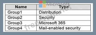 You have a Microsoft 365 E5 subscription that is linked to an Azure Active Directory (Azure AD) tenant. The tenant contains the groups shown in the following table.