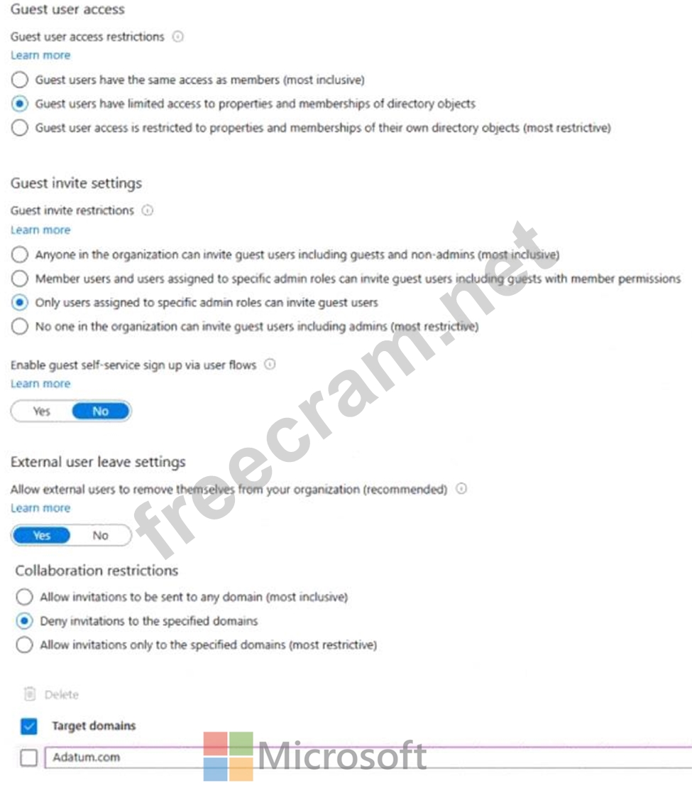 In Azure AO. the External collaboration settings are configured as shown in the exhibit (Click the Exhibit tab).