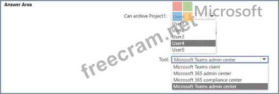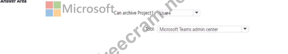 Which user can archive Project 1, and which tool should be used to perform the task? To answer, select the appropriate options in the answer area.