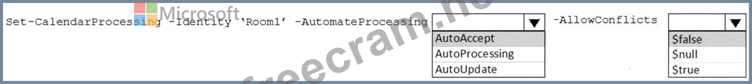You need to ensure that Room1 automatically accepts meeting invitations. The solution must prevent meeting invitations from being accepted if the room is unavailable.