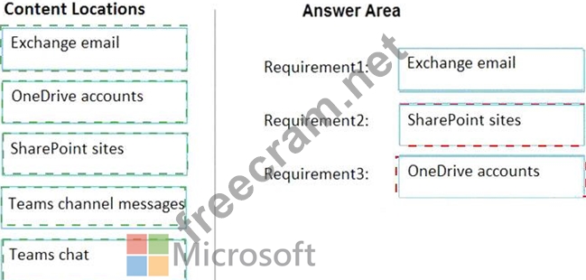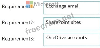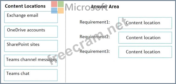 Which content location should you include in the retention policies? To answer, drag the appropriate content locations to the correct requirements. Each content location may be used once, more than once, or not at all.