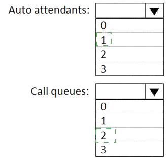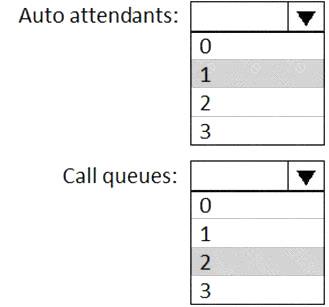 What is the minimum number of auto attendants and call queues you should configure to meet the requirements? To answer, select the appropriate options in the answer area.