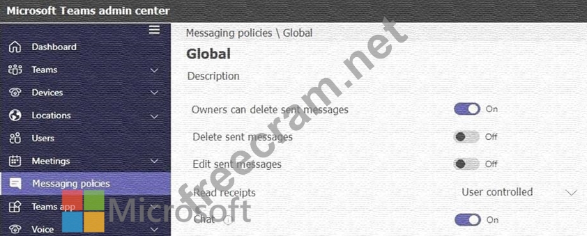 The company's only messaging policy is a global messaging policy configured as shown in the following exhibit.