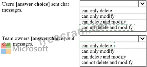 Question 121: Your company uses Teams. Two users named User 1 and User2 us...