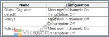 Question 4: The Subscription has the Teams policy shown in the following...