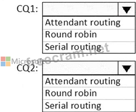 Which routing method should you configure for each call queue? To answer, select the appropriate options in the answer area.