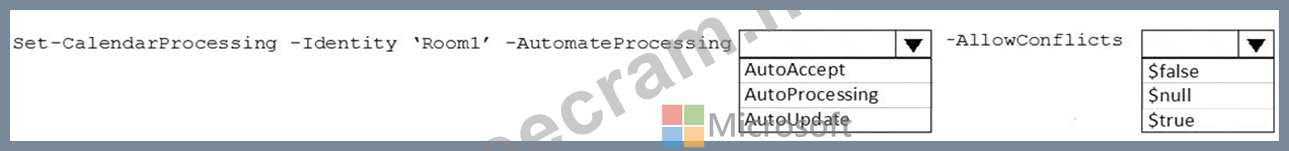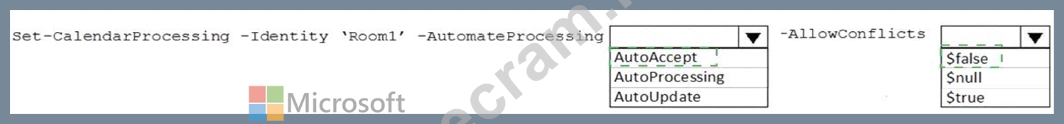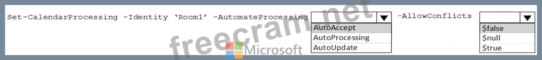 You need to ensure that Room1 automatically accepts meeting invitations. The solution must prevent meeting invitations from being accepted if the room is unavailable.
