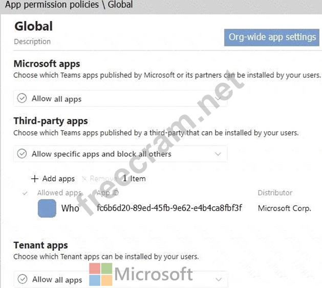 The company's global app permission policy is configured as shown in the following exhibit.