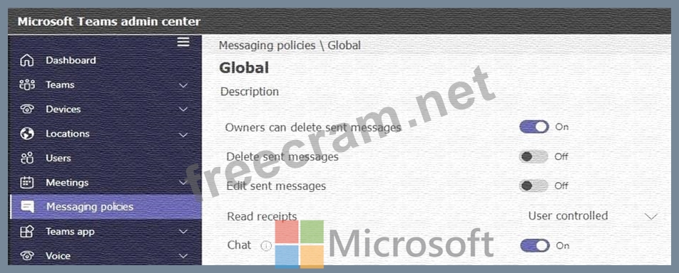 The company's only messaging policy is a global messaging policy configured as shown in the following exhibit.