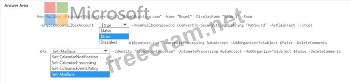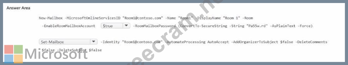 You need to create a Microsoft 365 resource account named Room1 for the device. The solution must ensure that Room1 automatically accepts meeting invitations.