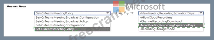 Question 41: Your company uses Microsoft Teams. You have a meeting policy...