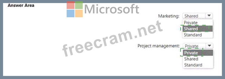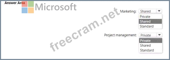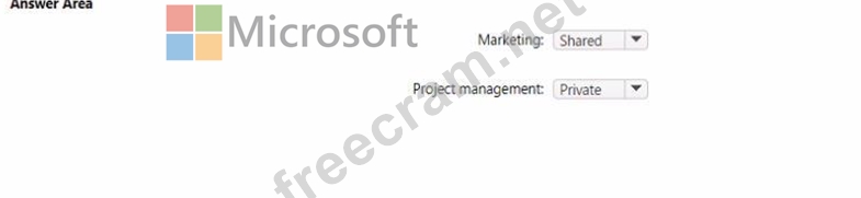 Which type of channel should you use for each department? To answer, select the appropriate options in the answer area.