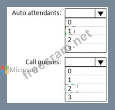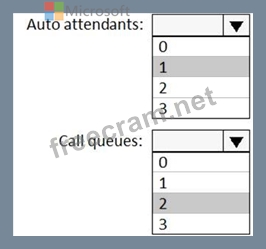 What is the minimum number of auto attendants and call queues you should configure to meet the requirements? To answer, select the appropriate options in the answer area.