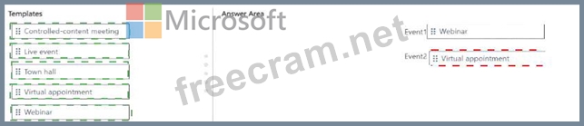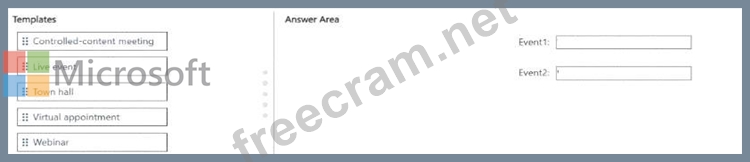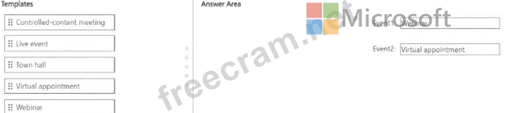 Which meeting template should you use for each event? To answer, drag the appropriate templates to the correct events. Each template may be used once, more than once, or not at all. You may need to drag the split bar between panes or scroll to view content.