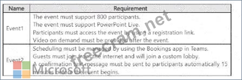 You have a Microsoft 365 E5 subscription and use Microsoft Teams. You plan to schedule the events shown in the following table.
