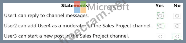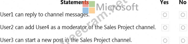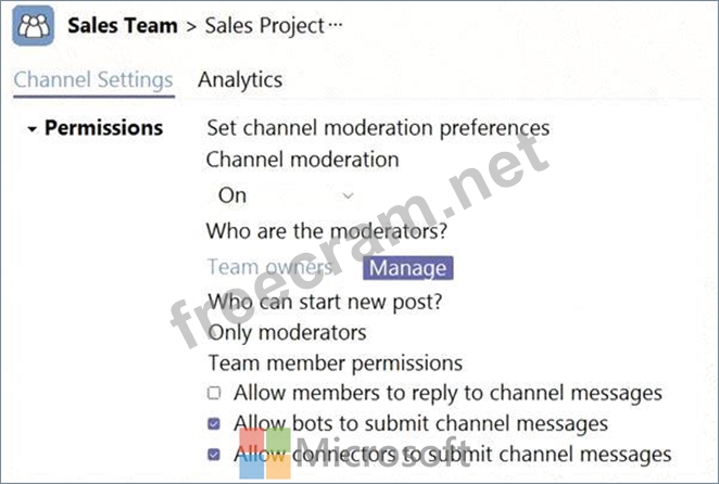 You create a channel named Sales Project and configure the Channel moderation settings as shown in the following exhibit.