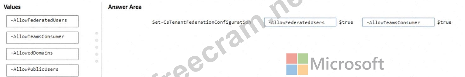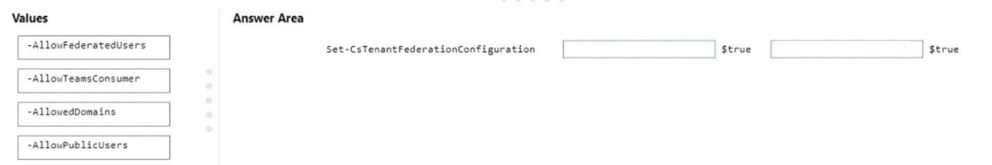 How should you complete the PowerShell cmdlets? To answer, drag the appropriate values to the correct targets. Each value may be used once, more than once, or not at all. You may need to drag the split bar between panes or scroll to view content.