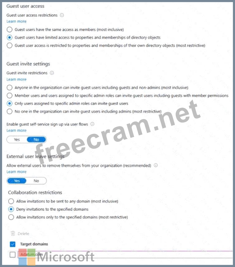 In Azure AO. the External collaboration settings are configured as shown in the exhibit (Click the Exhibit tab).