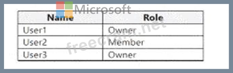 You have a team named Project! that contains the users shown in the following table.