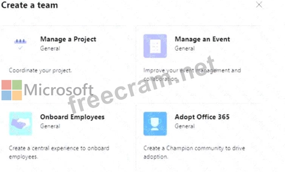 When a user creates a new team, the user sees the templates shown in the following exhibit.