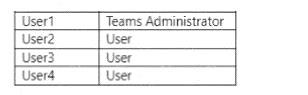 You have a Microsoft 365 subscription that uses Teams and contains the users shown in the following table.