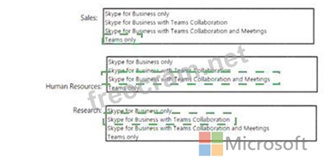 You plan to upgrade to Microsoft Teams in stages based on groups. The features required by each group are shown in the following table.