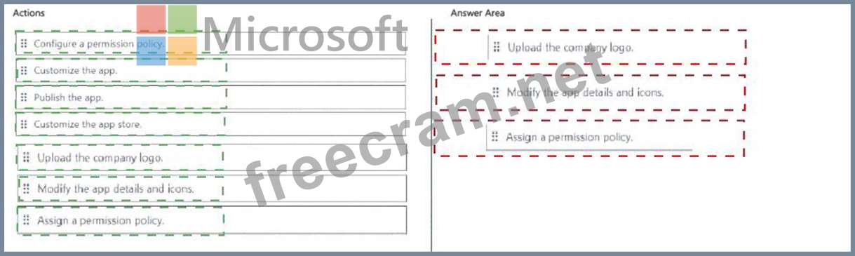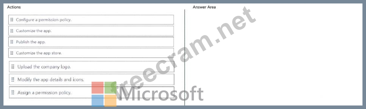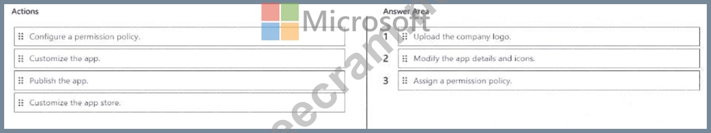 Which three actions should you perform in sequence? To answer, move the appropriate actions from the list of actions to the answer area and arrange them in the correct order.