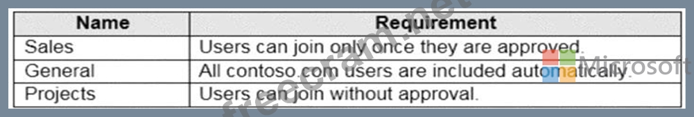 You need to create the Microsoft Teams teams shown in the following table.