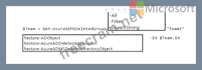 How should you complete the PowerShell script? To answer, select the appropriate options in the answer area.