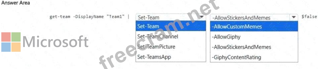 How should you complete the PowerShell cmdlet? To answer, select the appropriate options in the answer area.
