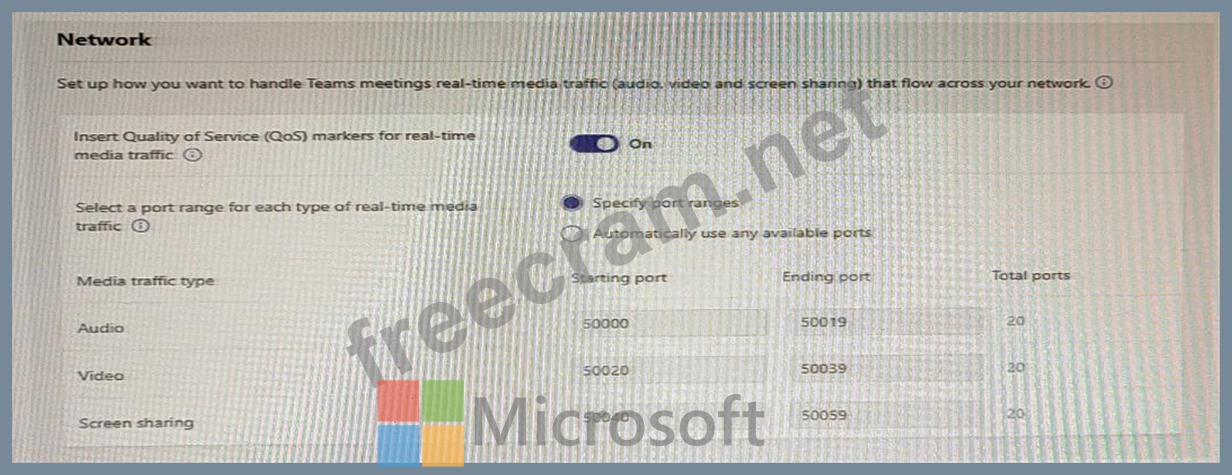 Question 10: The network meeting settings for Microsoft Teams are configu...