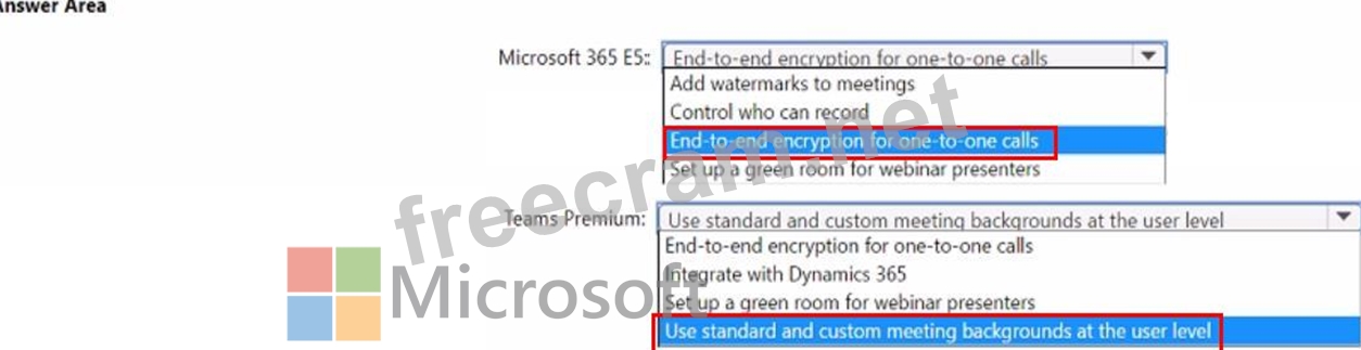 Which feature is included in Microsoft 365 E5, and which feature is exclusive with Teams Premium? To answer, select the appropriate options in the answer area.