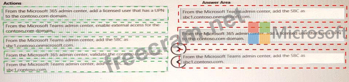 When you attempt to deploy a Session Border Controller (SBC) named sfac1xontoso.com. you receive the following error message: "We cant use the "SBCl-Contoso.com" domain as it hasn't been set up in the organization. Try agaax. If you continue to have problems, contact Microsoft customer support." You need to add the SBC to the tenant.